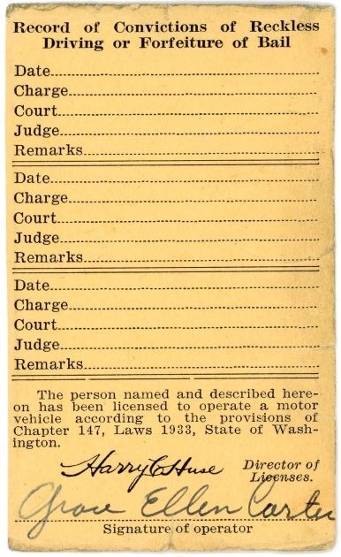 This Washington state driver’s license was issued to Grace Carter of Seattle in August 1936.