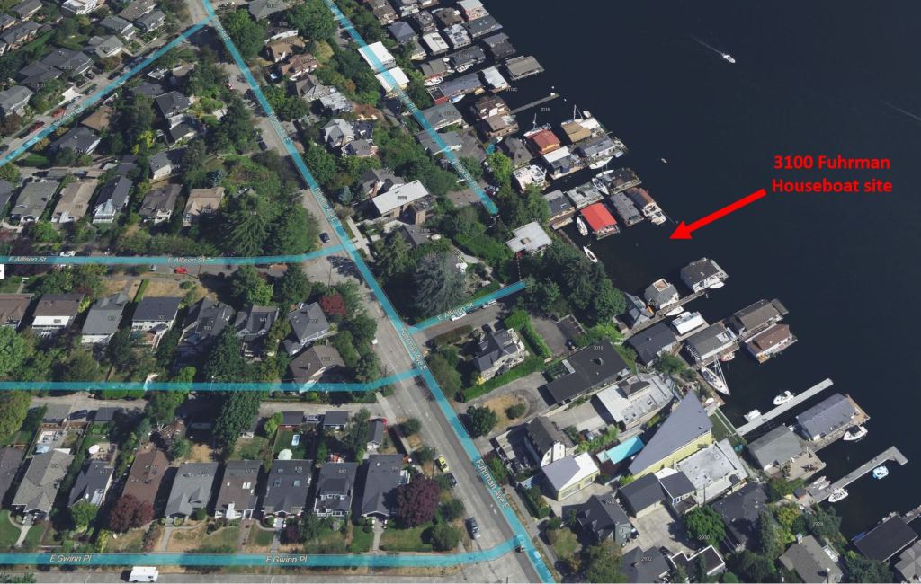 The address listed on Grace Carter’s driver’s license is 3100 Fuhrman Ave, Seattle, which today registers no buildings: Fuhrman Avenue house numbers progress from 3018 to 3102, between which is a very short section of Allison Avenue headed straight into Portage Bay.