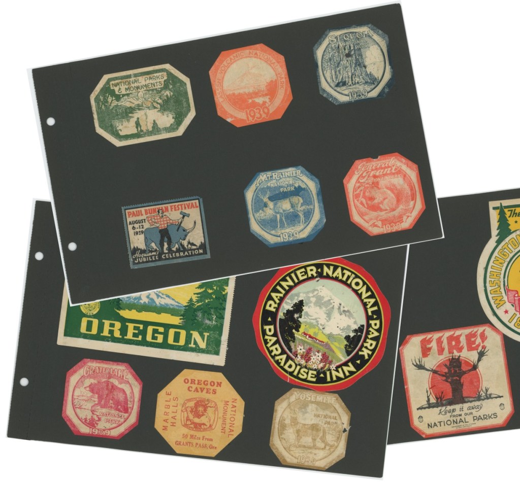 A more colorful form of souvenir than today’s National Park passport stamp program (get yours; they’re a fun way to inspire travel to meaningful places across the country), they are commonly seen on the windshields of cars in old photographs, and they were often saved in photo albums and trip journals.