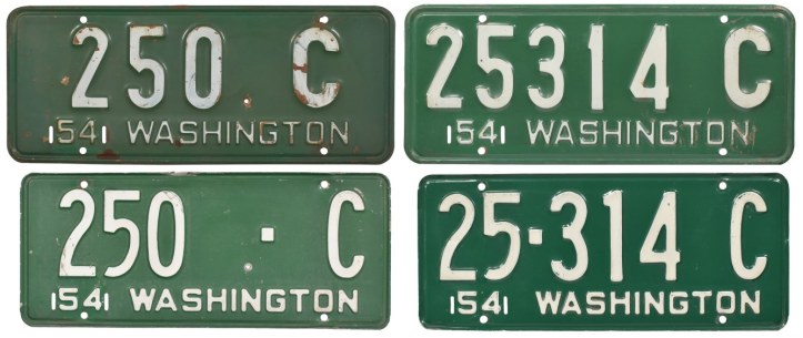 Below is an overview of Washington’s license plate history that I’ve compiled and illustrated with examples from my collection. Please do not reproduce without permission. I’d love hear from anyone who may have questions, comments, needs more information, or has some old plates that need a new home (please see my Items wanted).