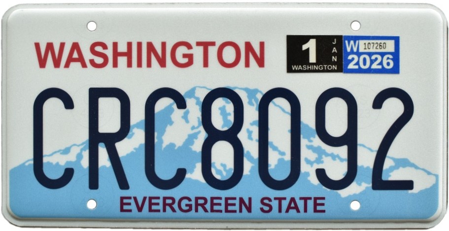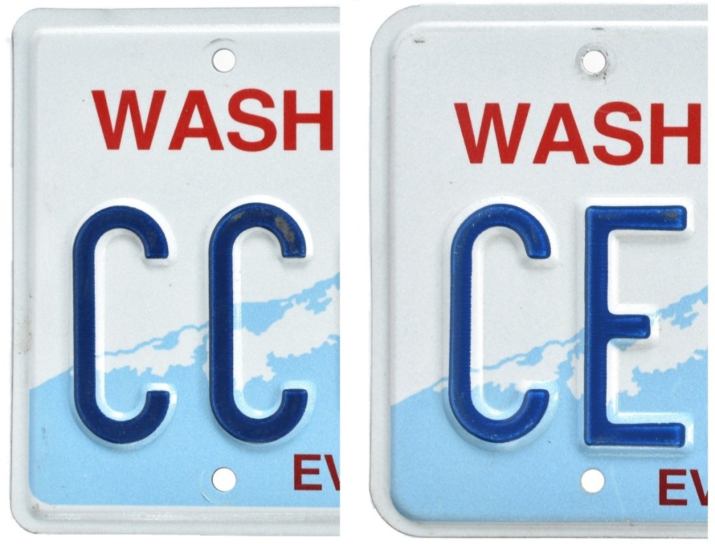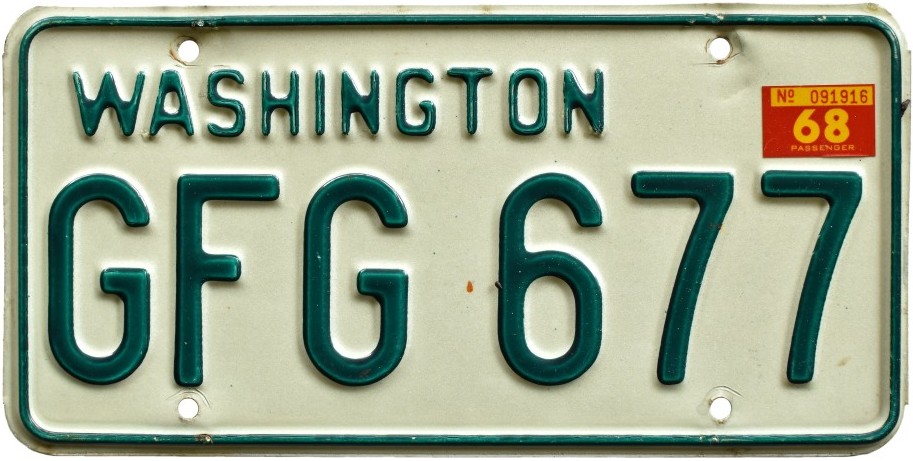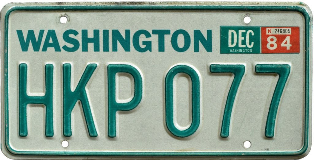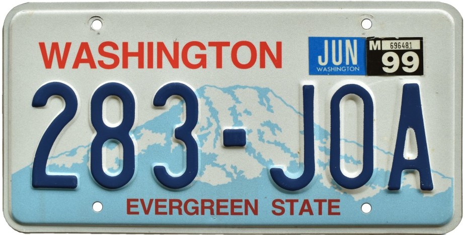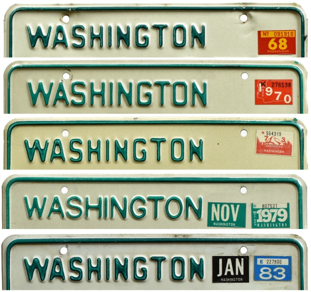 Not long after, Washington’s standard issue license plate was modernized, slightly, with the embossed state name replaced by a screened graphic.