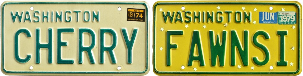 The 1970s also kicked off another innovation is taken for granted today: license plates evolving from a mere registration device into a forum for personal expression. In late 1973, personalized plates were made available for the first time in Washington after a voter-passed referendum overrode the objections of Governor Dan Evans. For an extra fee, motorists could apply to for their own registration of two to six characters (updated in the mid-1980s to one to seven characters), subject to state approval.
